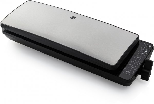 Leistungsstarker 110 Watt Motor | Vakuumverpackungen halten Ihre Lebensmittel bis zu 5 Tage länger frisch | Erhaltung der Aromen und Vitamine | Verhinderung Gefrierbrand | Vakuumieren (die Luft entziehen) und luftdicht versiegeln | Wiederverschließen von Dosen | Kompakt und äußerst platzsparend | Vakuum-Kapazität von 12 Liter pro Minute bei 0,8 bar | Auswahlmöglichkeit zwischen 4 verschiedenen Modi | Ideal dazu geeignet, Sous-Vide zu garen
