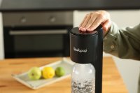 Besonders schlankes Design für jede Küche | Einfache ONE-TOUCH Bedienung per Knopfdruck | Hervorragende Sprudelqualität in beliebiger Intensität: leicht, medium, spritzig | Kompatibel mit BPA-freier PET-Flasche Cooper (850 ml) im stylischen Look | HINWEIS: CO?-Zylinder ist nicht im Lieferumfang enthalten Reduzierung von Plastikmüll: Ein Zylinder erspart den Müll von bis zu 40 großen PET-Flaschen |